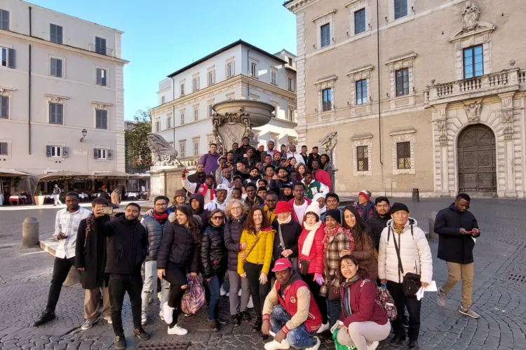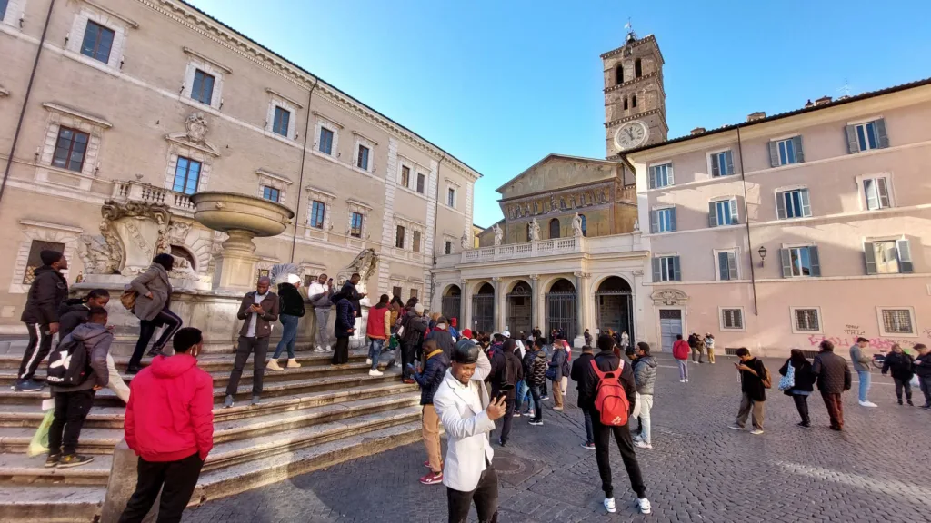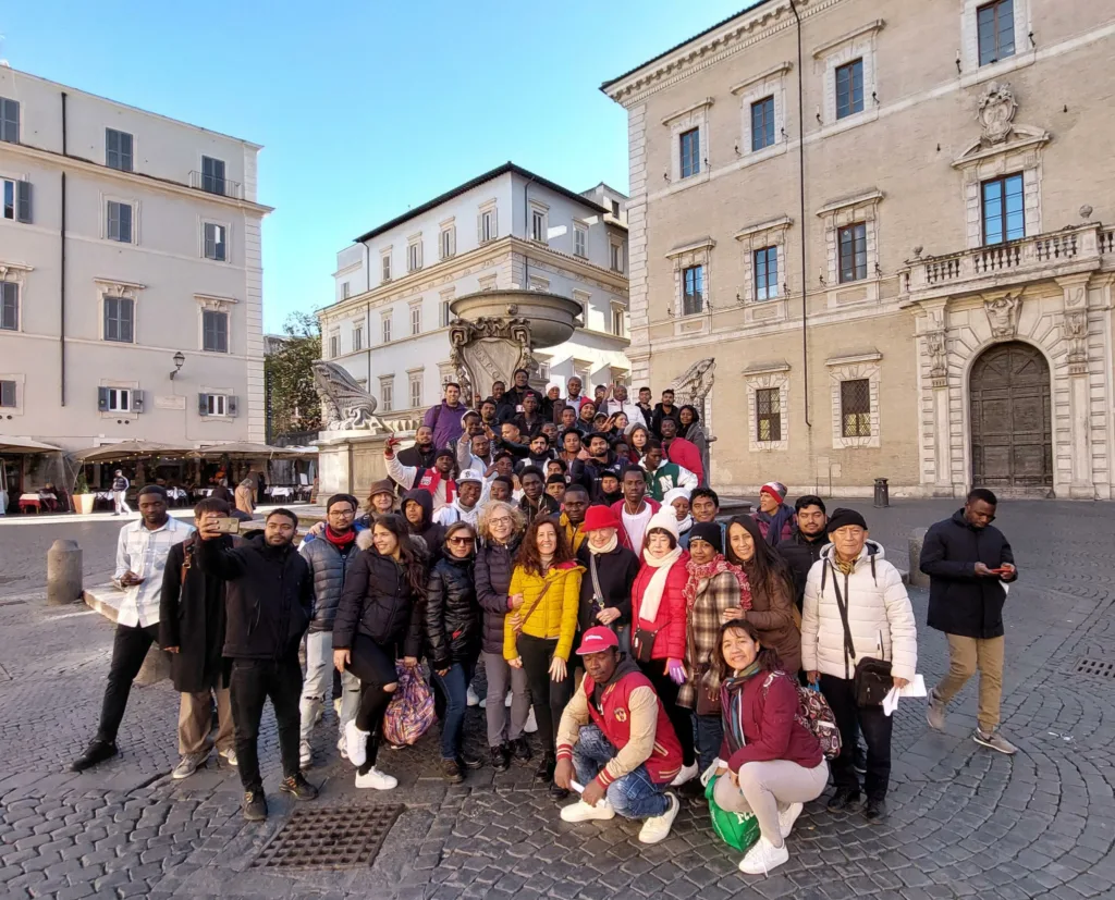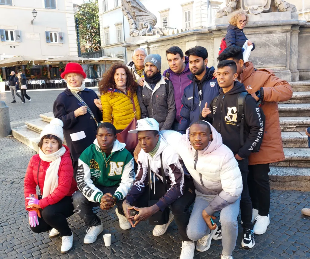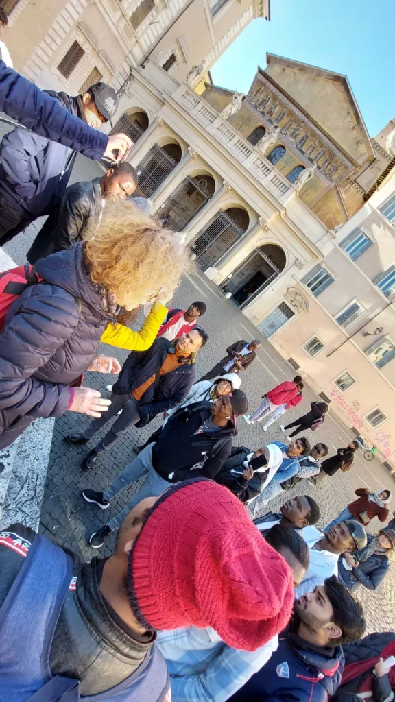 Accompagnati da cinque volontarie della CdS, sessantacinque studenti hanno preso parte a un itinerario lungo alcuni dei luoghi più caratteristici di Roma. Gli studenti e le studentesse erano soprattutto di nazionalità africana (Burkina Faso, Gambia, Costa d’Avorio, Guinea, Senegal, Mali, Nigeria, Congo), 17 bangladesi, 6 peruviani, una venezuelana, un ucraino, una coreana, una cingalese e un pakistano.