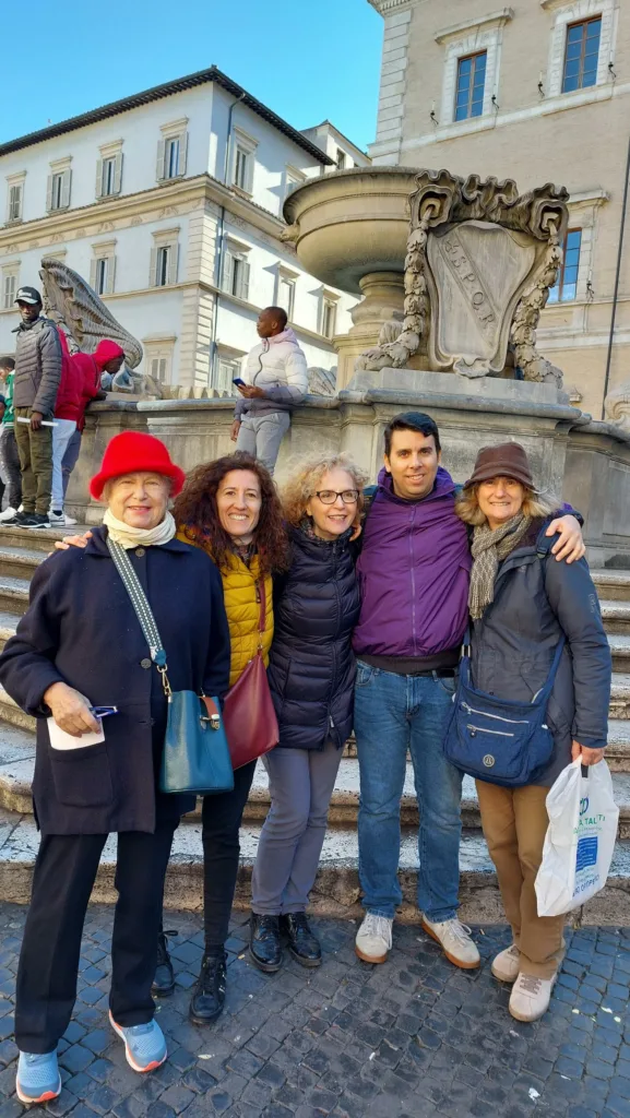 Il tredicesimo rione di Roma è sempre molto amato per il carattere popolare, la vivacità e il multiculturalismo che si respira per le vie. Attraverso i vicoli si è giunti alla basilica di Santa Maria in Trastevere dal caratteristico stile romanico. La visita dell’interno della basilica per ammirare i mosaici del Cavallini ha fatto tardare il gruppo. Si è deciso, dunque, di rinunciare alla tappa al Gianicolo e fermarsi nella piazza di Santa Maria in Trastevere per la consueta merenda finale, stavolta a tema natalizio con pandori e datteri.