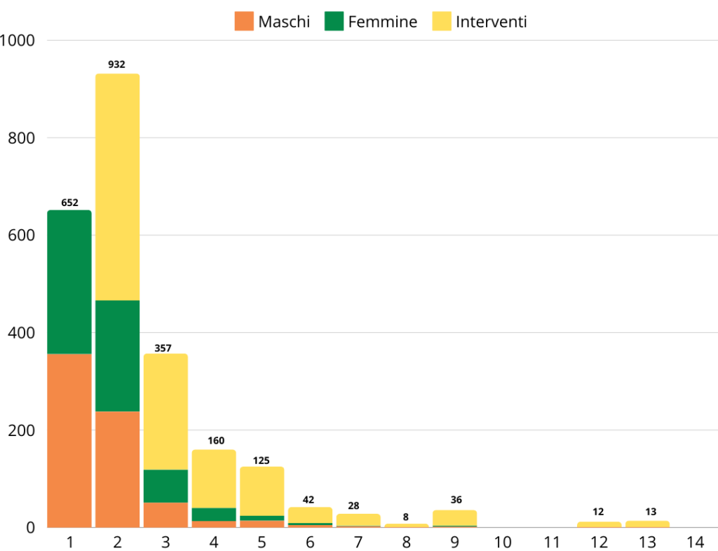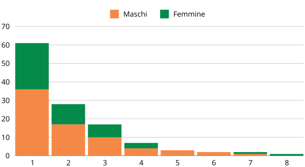Inoltre, in molti casi, i minori hanno avuto la possibilità di partecipare a più laboratori sia all’interno dell’Istituto Scolastico sia negli spazi del Fusolab, come riportato nel Grafico 1.